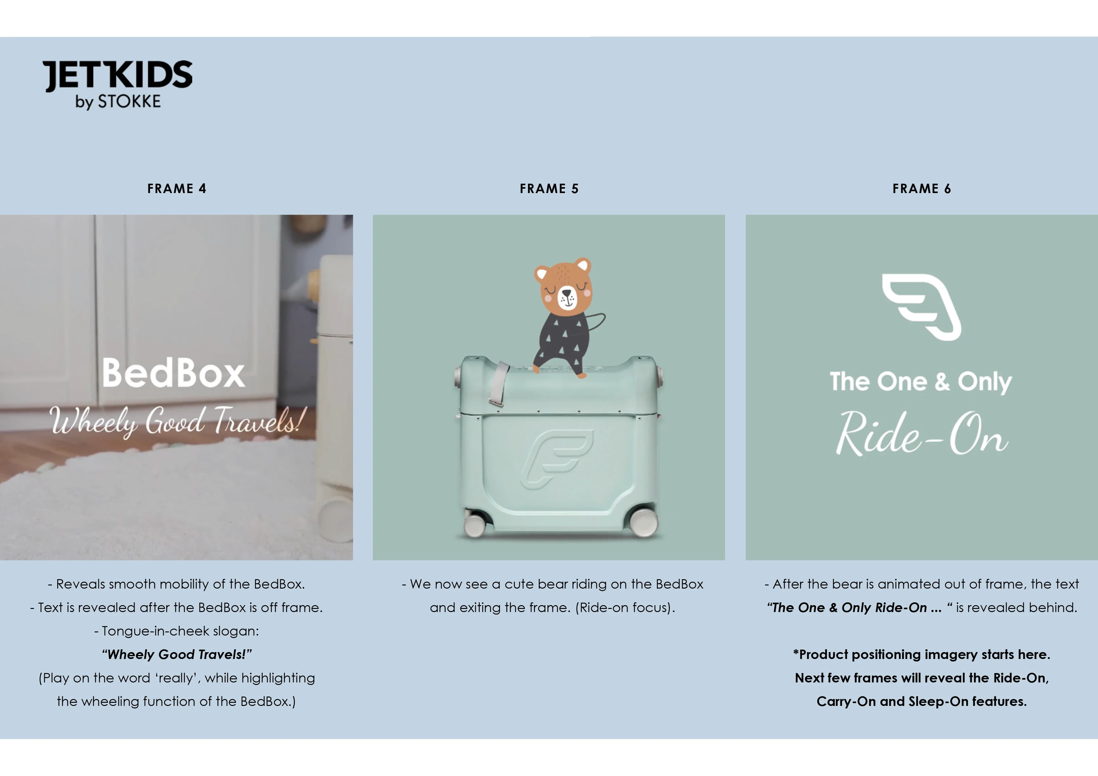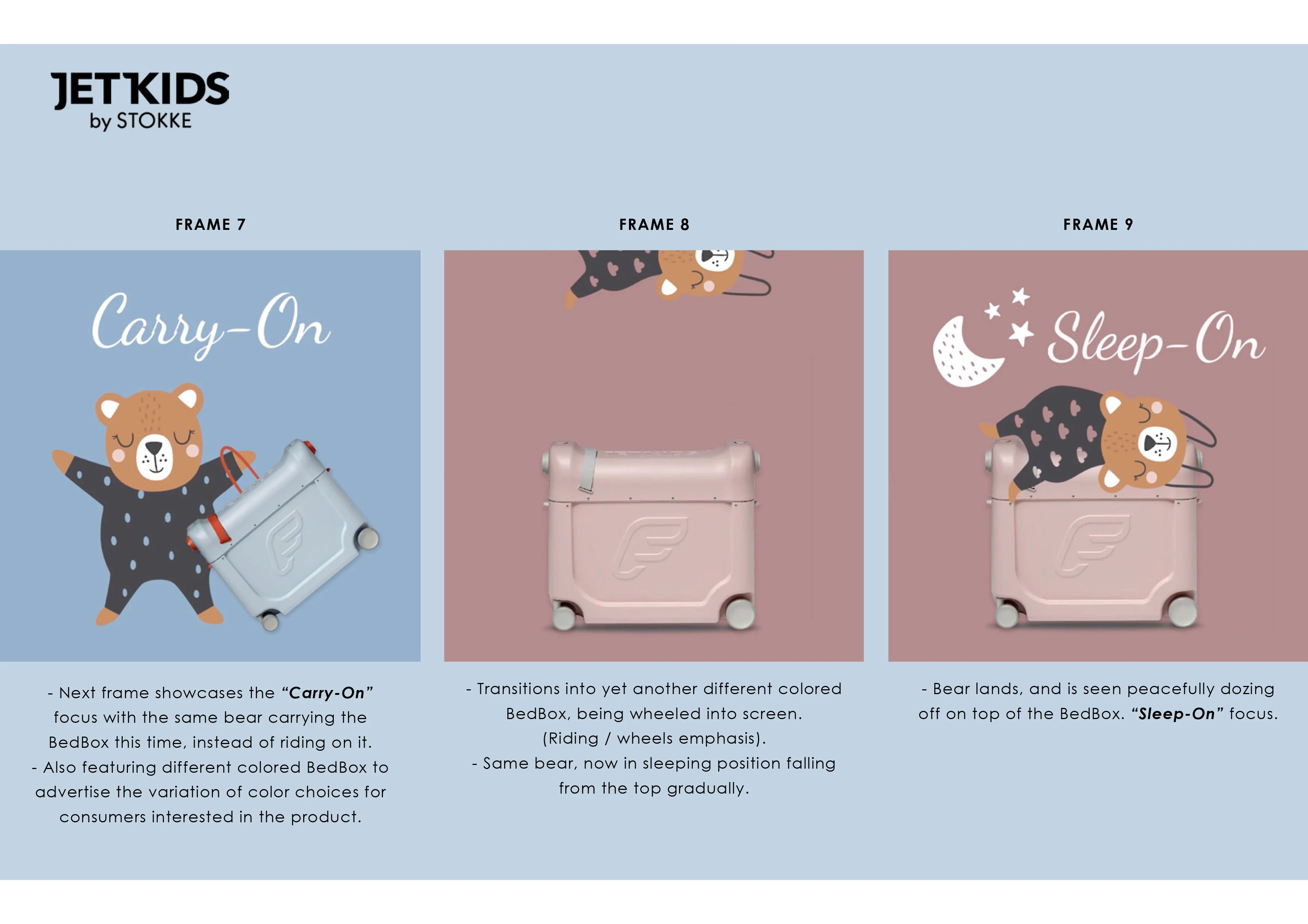 A charming and engaging video concept featuring adorable bears is developed to highlight the key features of the BedBox. A series of storyboard panels guides the narrative, creating a short yet informative piece designed for social media to boost audience engagement and brand connection.