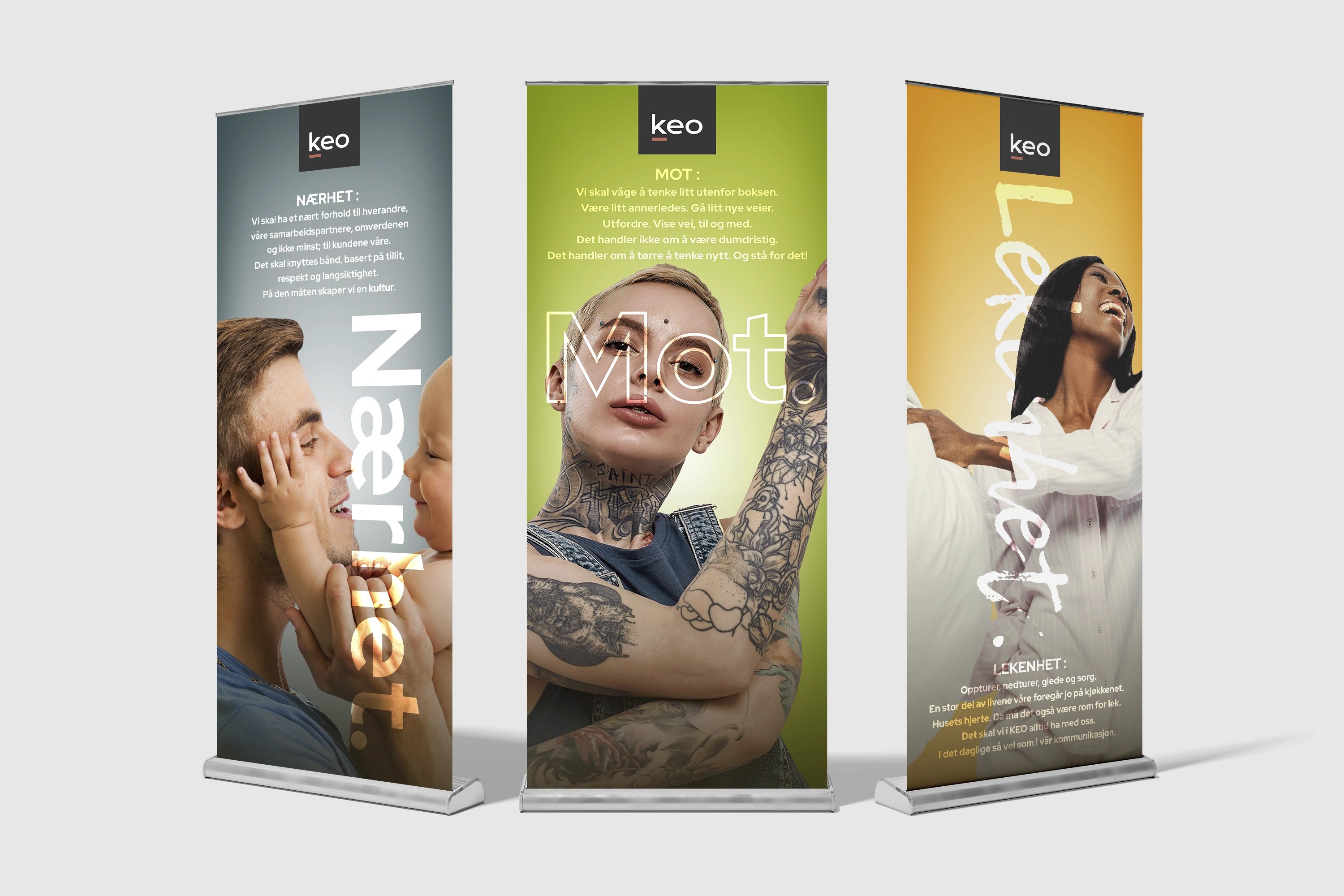 KEO requested three specific visuals to represent the company’s core values. Drawing from the vibrant colors in the new color strategy, I created three key visuals, each featuring an image of a person that embodies the corresponding human emotion, visually reinforcing the brand’s values.