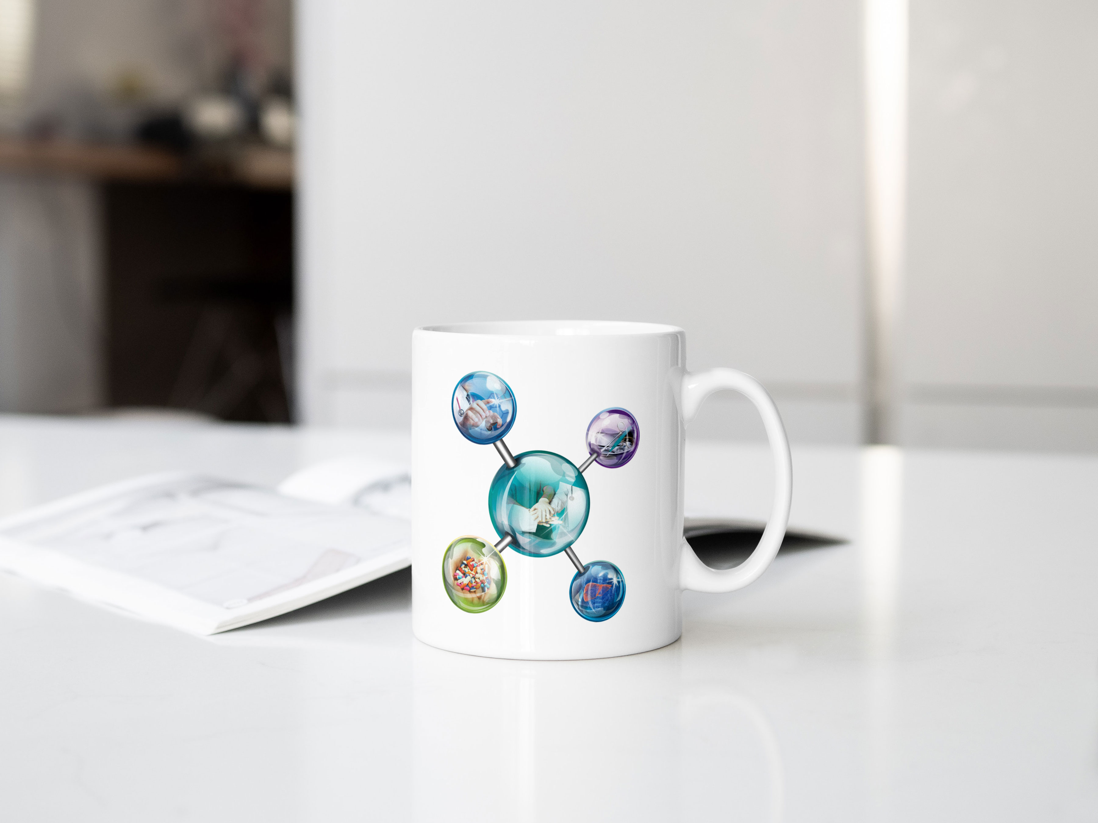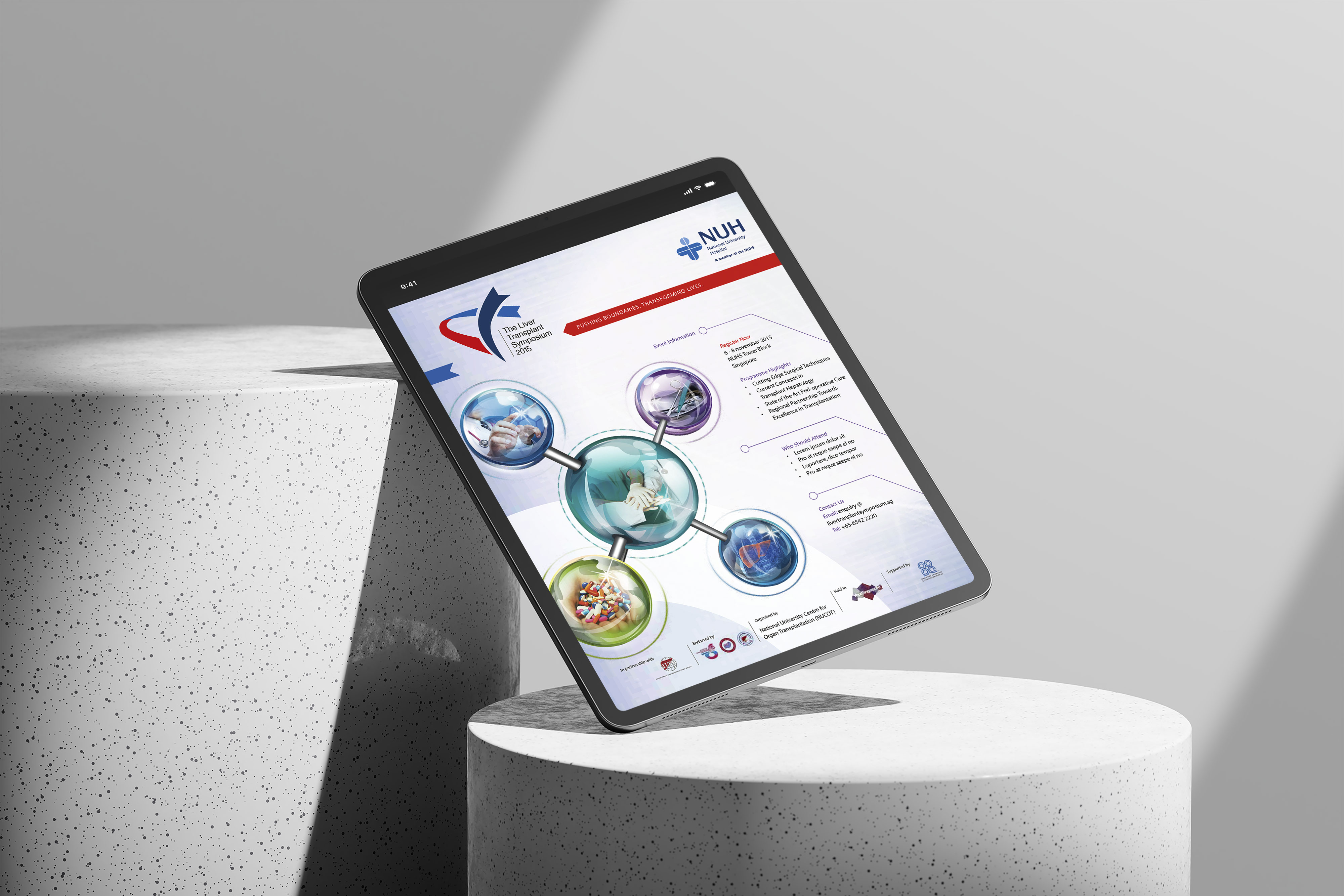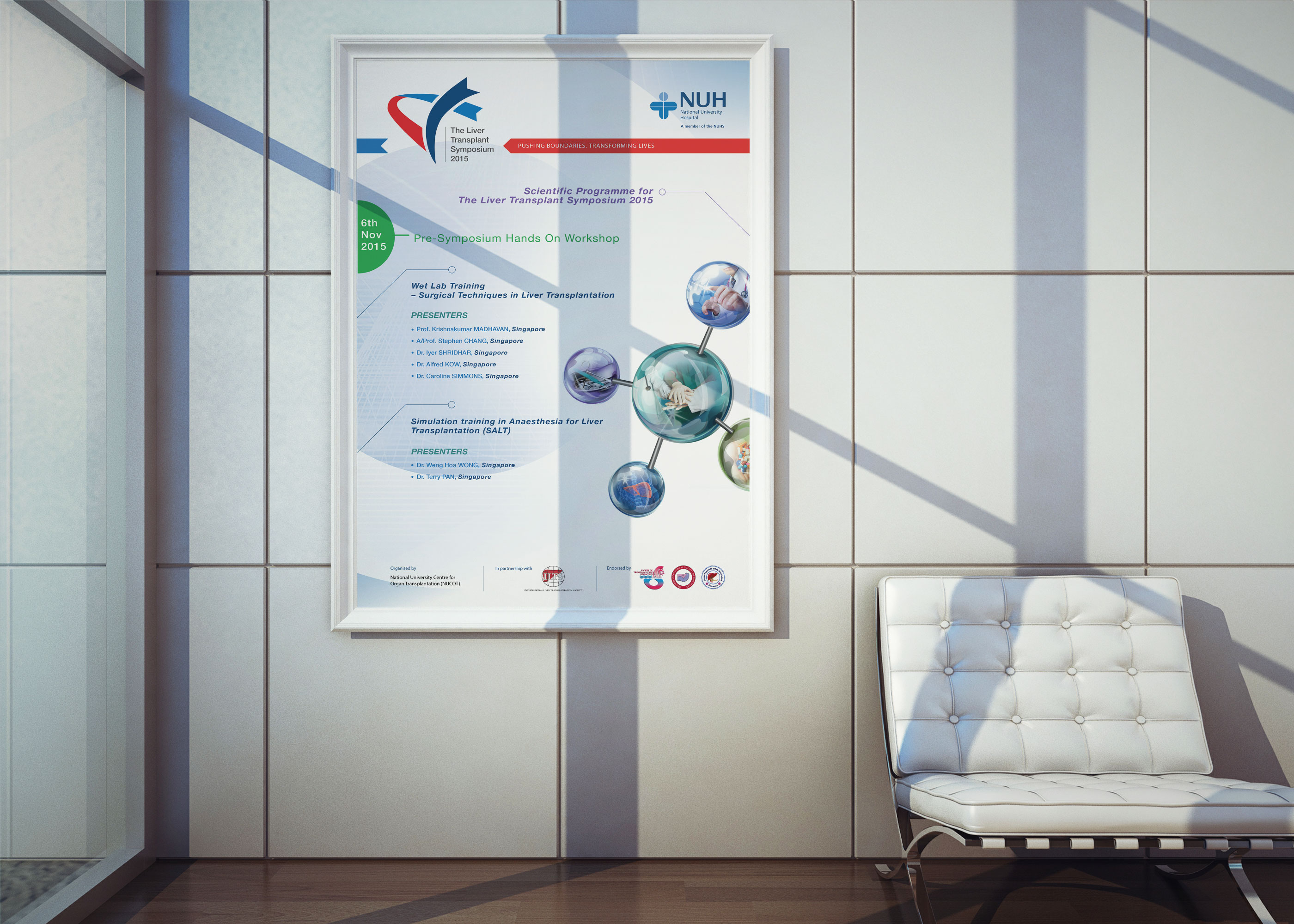 A scientific molecule, embodying various medical elements, has been designed to represent the event. This key icon will serve as the centre piece for both digital and print platforms, used for internal and external communications.