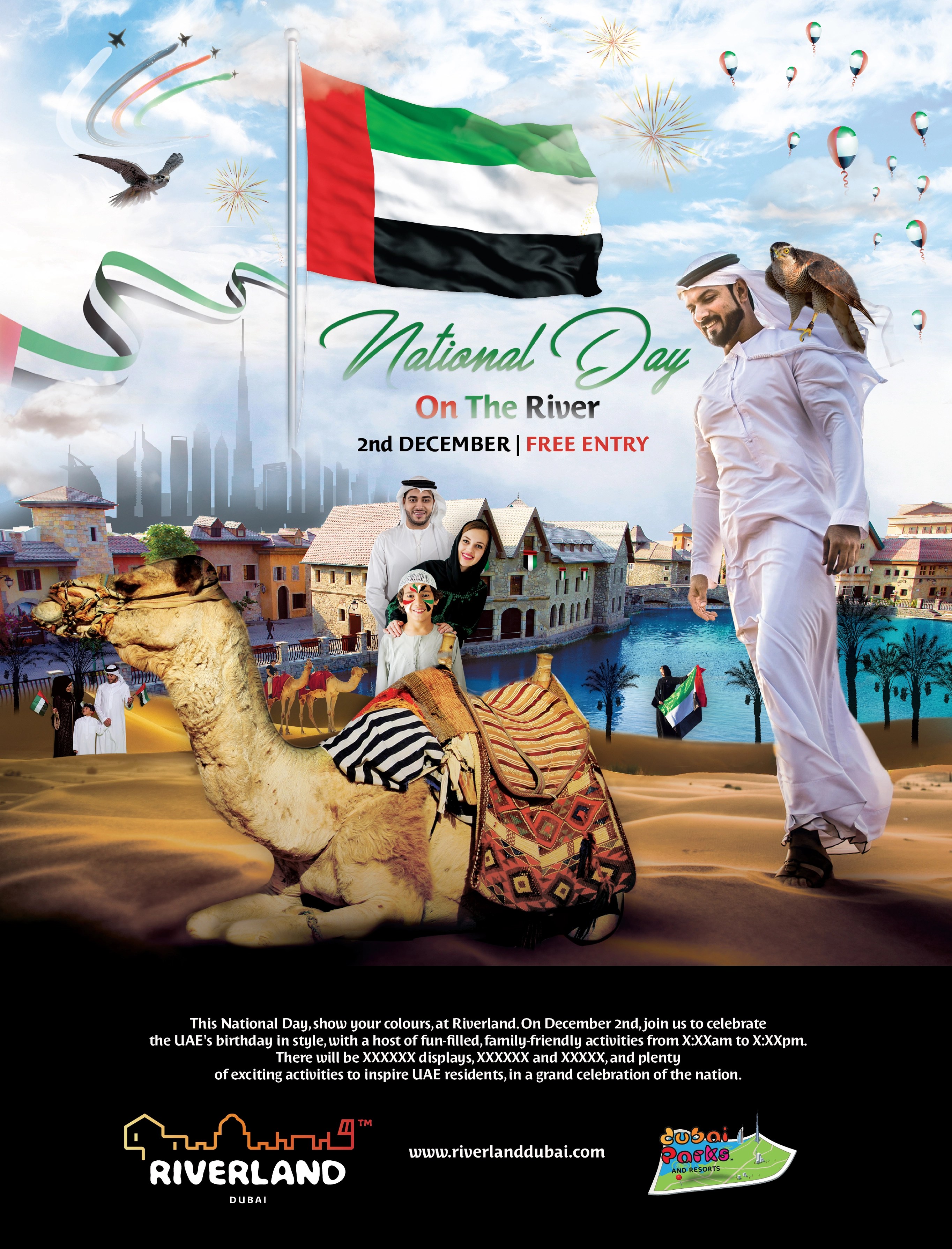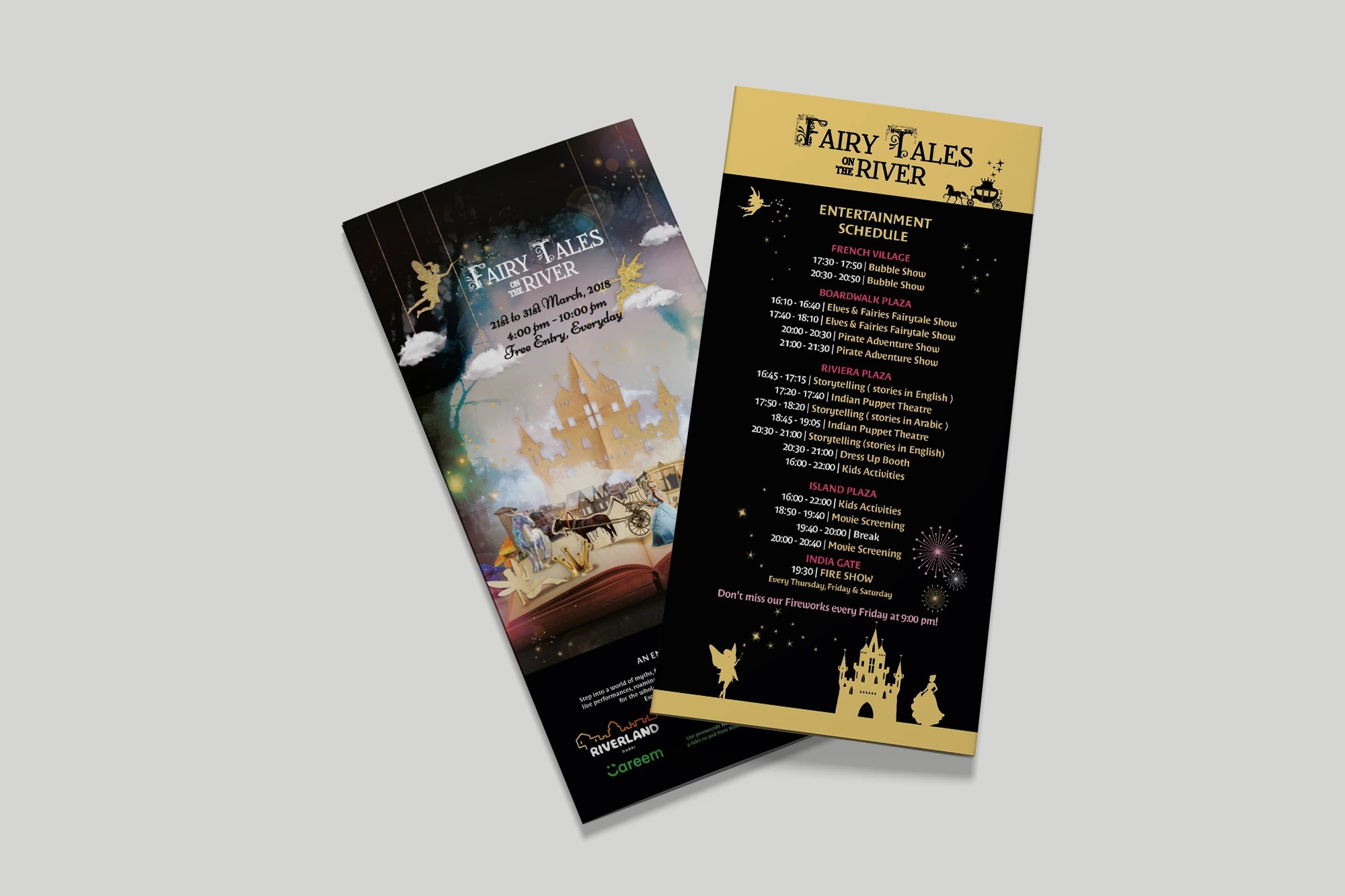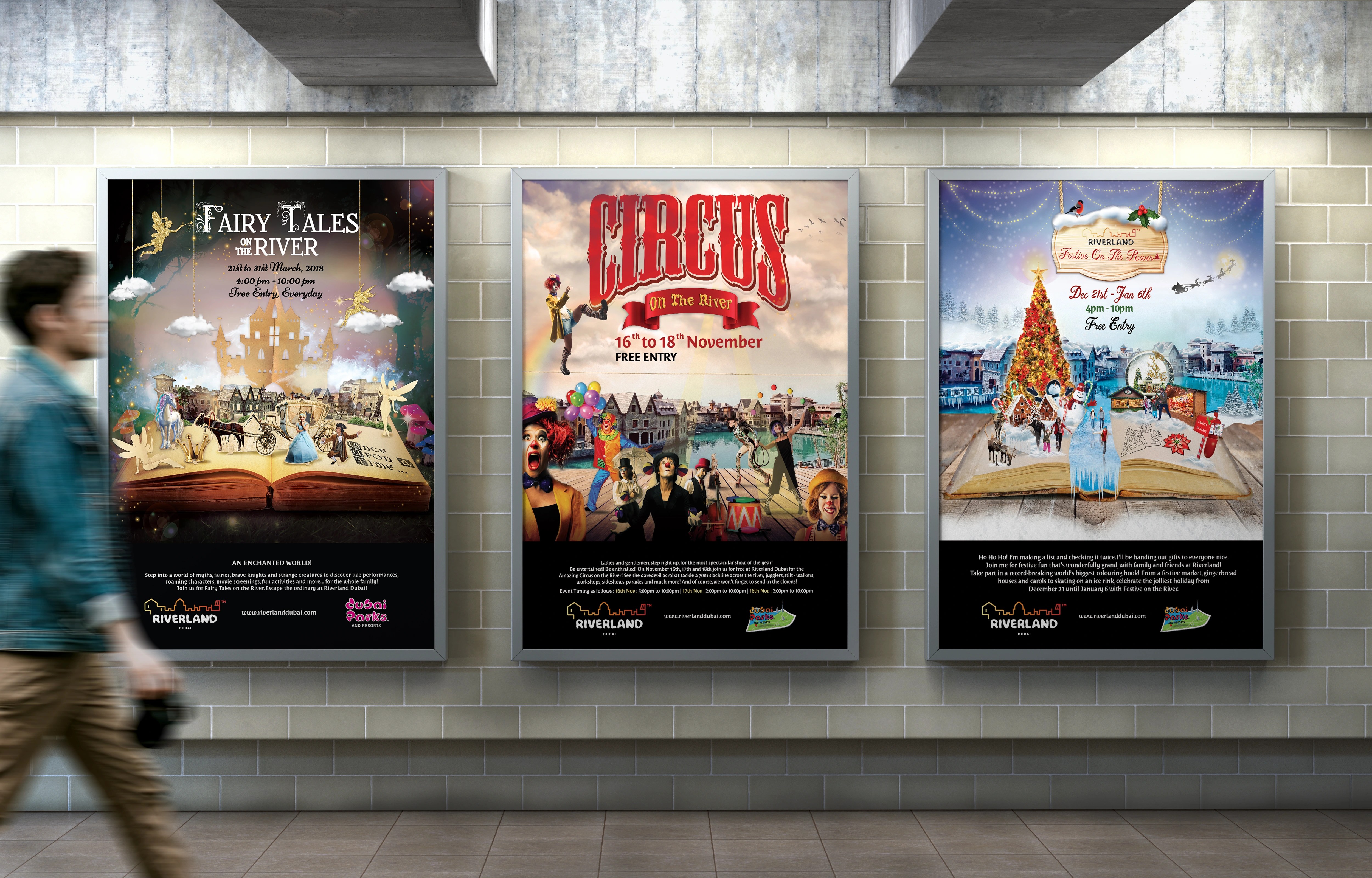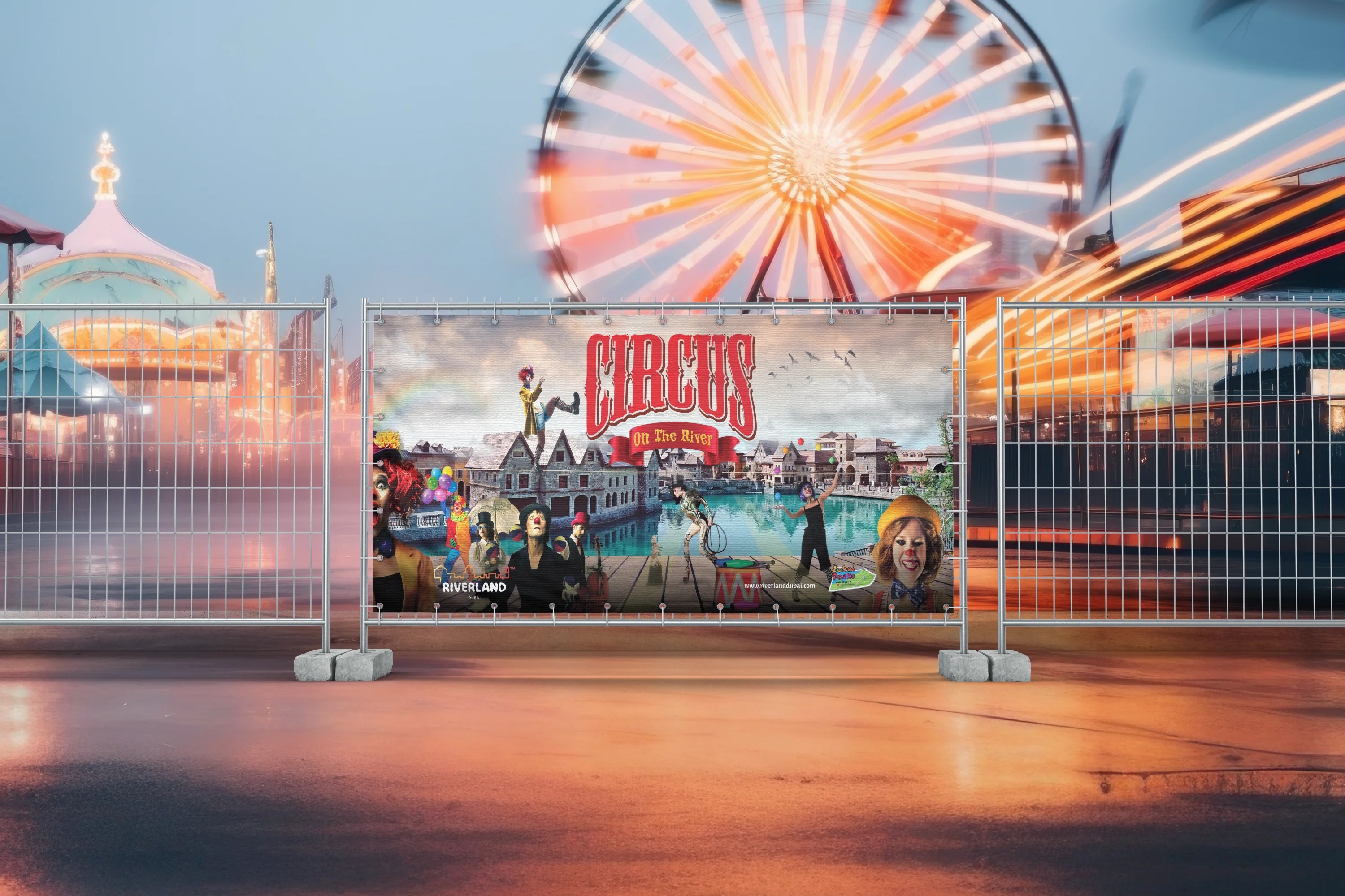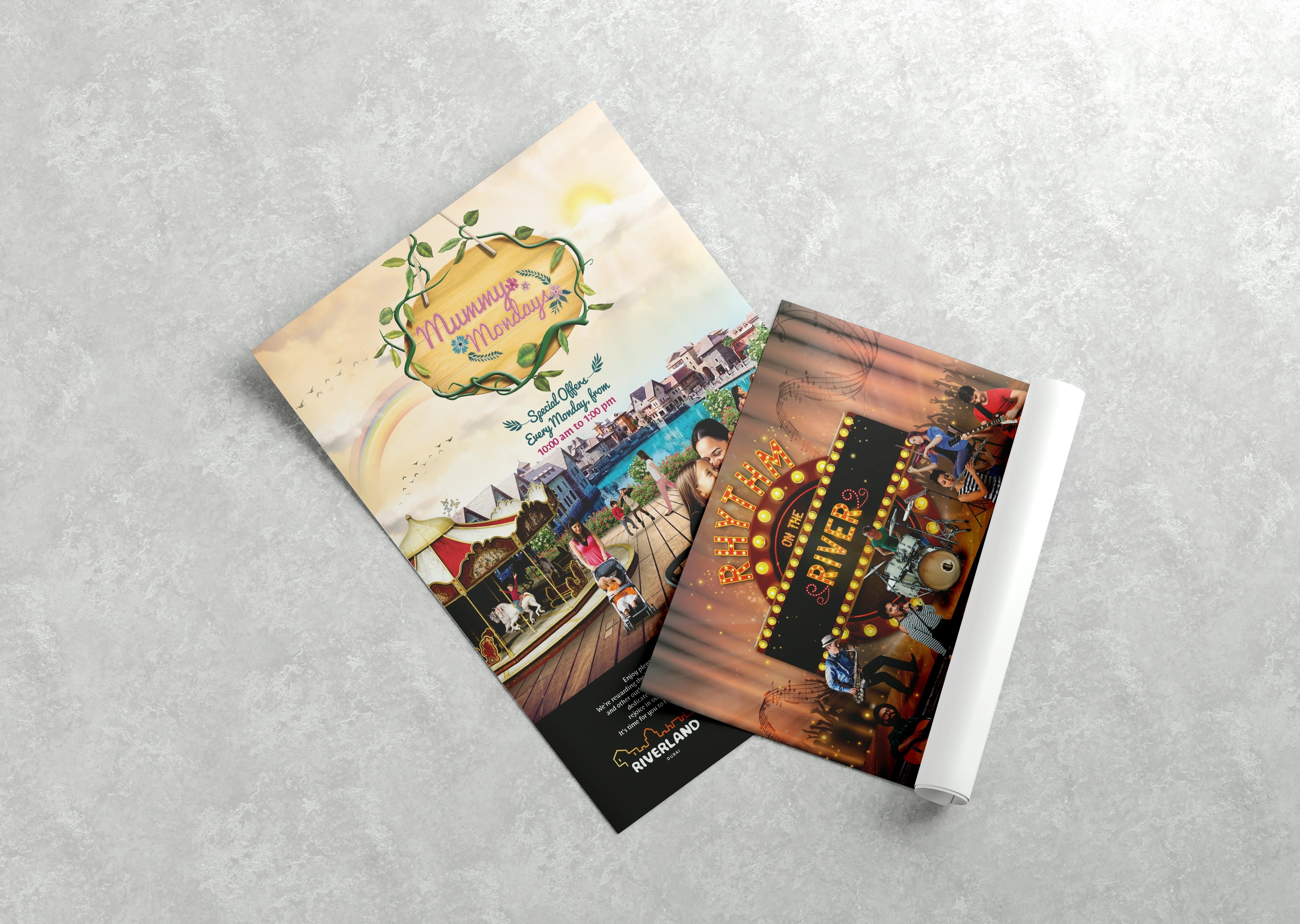 Riverland Dubai, in partnership with Dubai Parks & Resorts, hosts a unique themed event every week, completely free of charge, within the park’s picturesque French Riviera district. These vibrant, family-friendly experiences are open to all visitors. The objective was to create captivating visual content for way finding, print, and digital media to promote these weekly celebrations. Each event features its own bespoke key visual identity and marquee, ensuring each event has a unique feel.