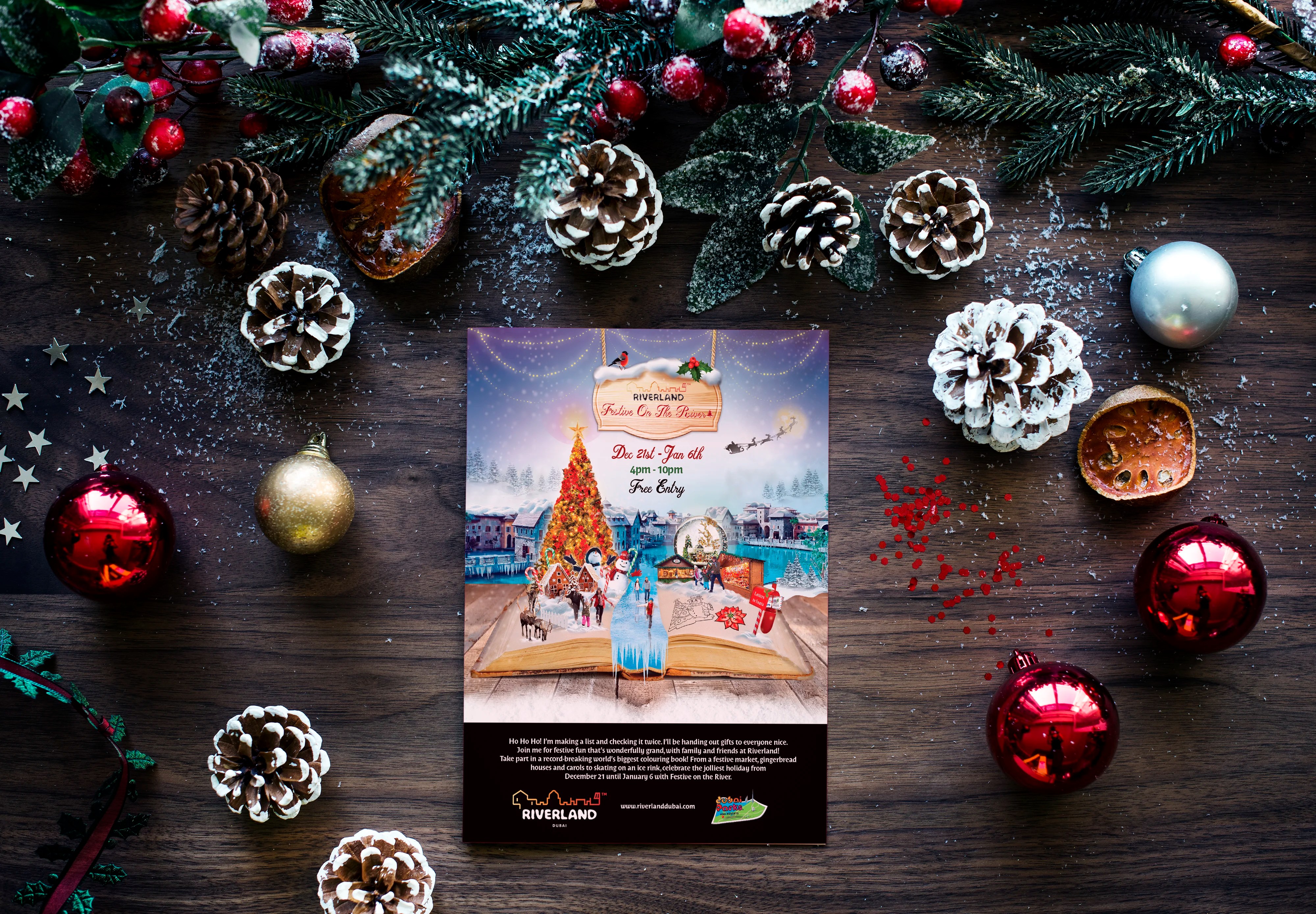 Christmas has arrived at Riverland Dubai! Building on the open book concept, this festive edition is filled with holiday-themed elements and a specially designed Christmas marquee.