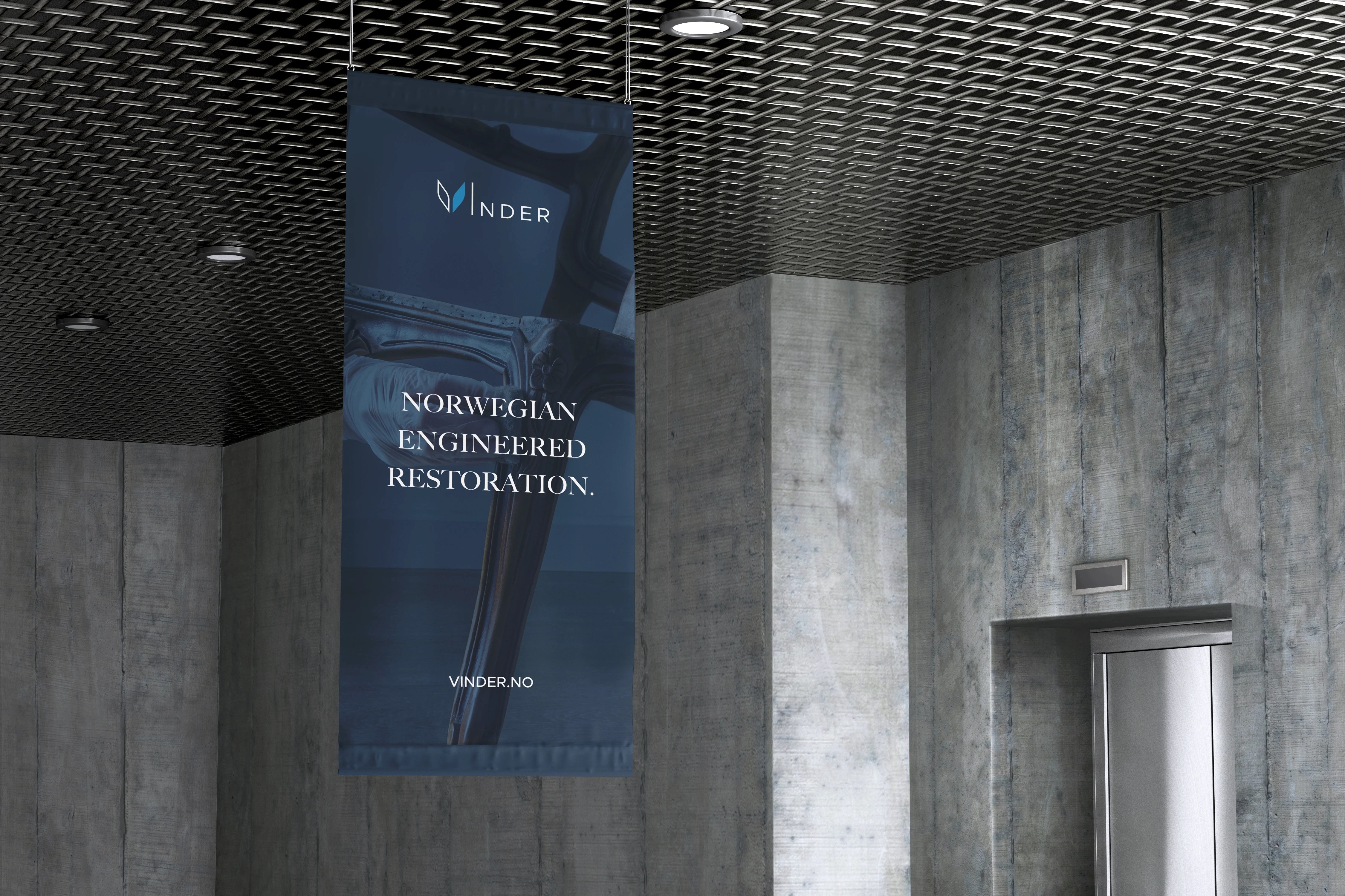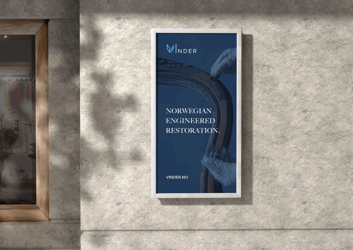 The brand name Vinder is a fusion of two Norwegian words: “Vinner” (meaning “winner”) and “Vind” (meaning “wind”). The logo symbolizes Vinder AS as a champion, soaring high in the blue skies or sailing smoothly across the seas, with the wind in their sails. We also emphasised on the Norwegian engineering expertise behind their restoration process, showcasing precision and craftsmanship.