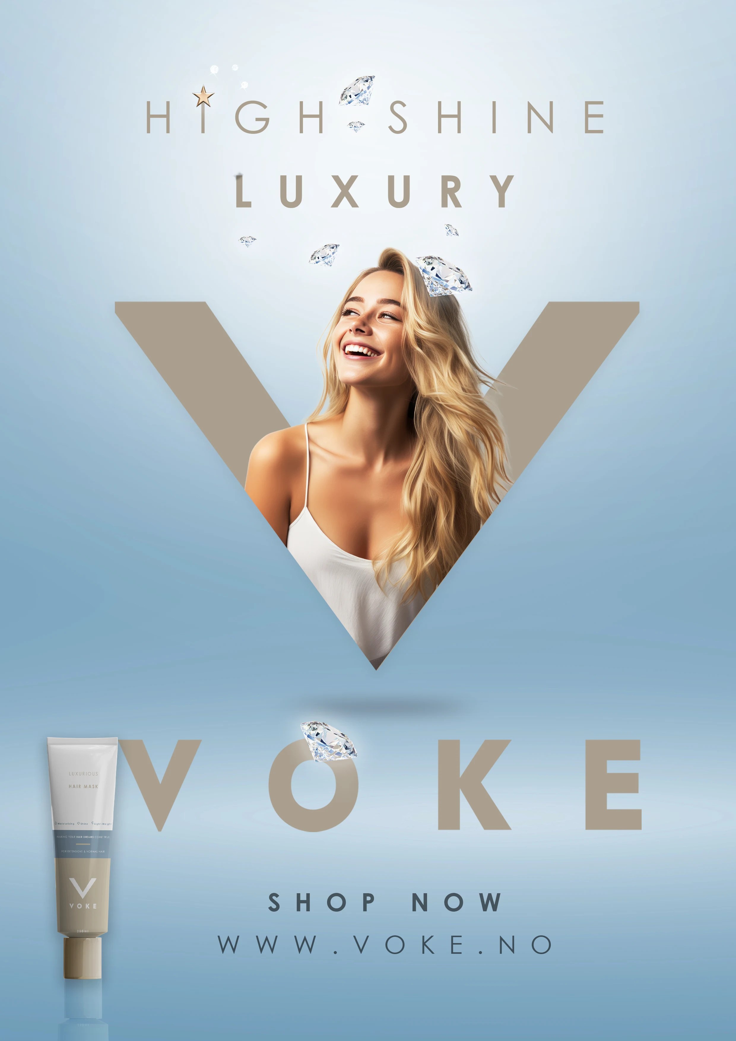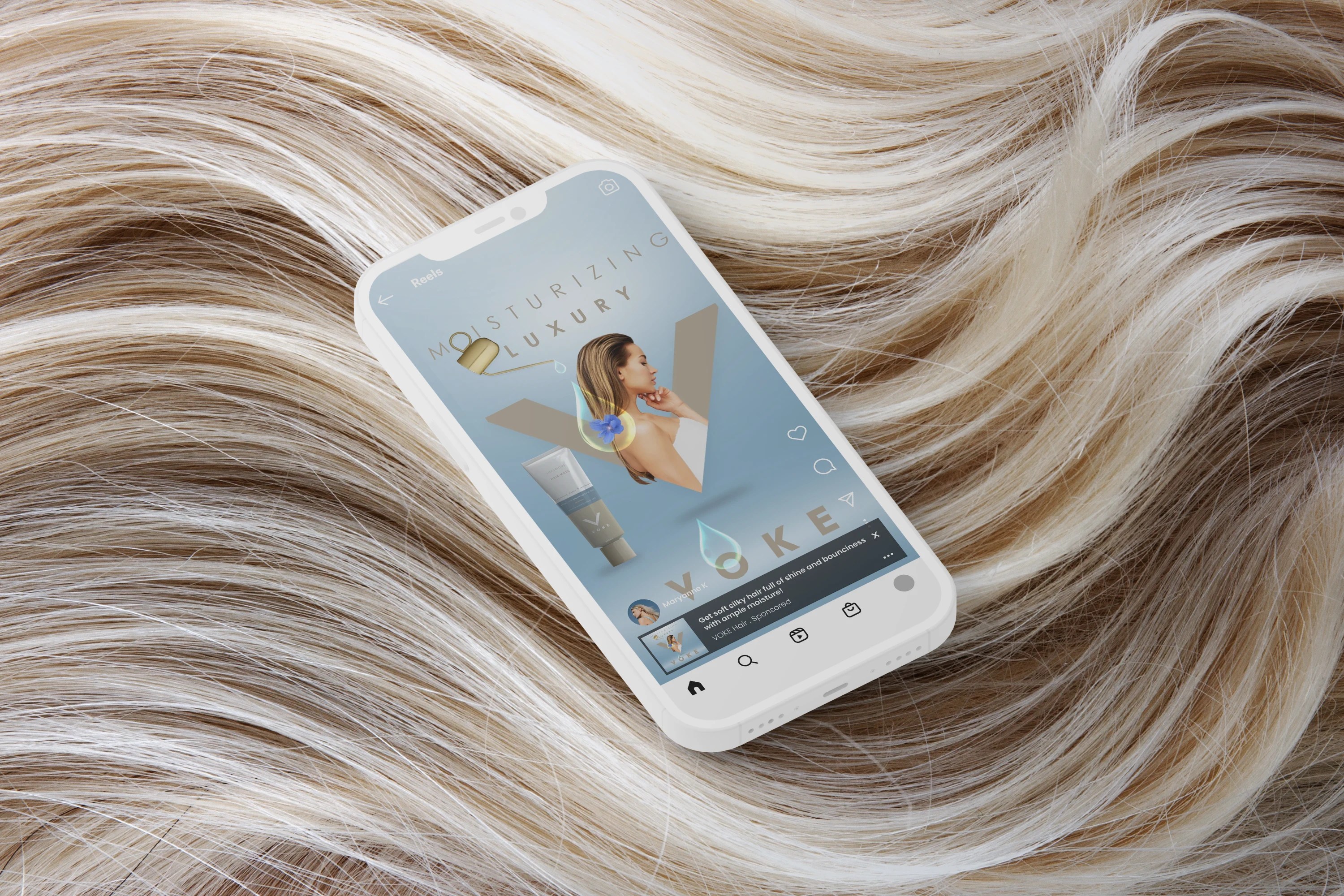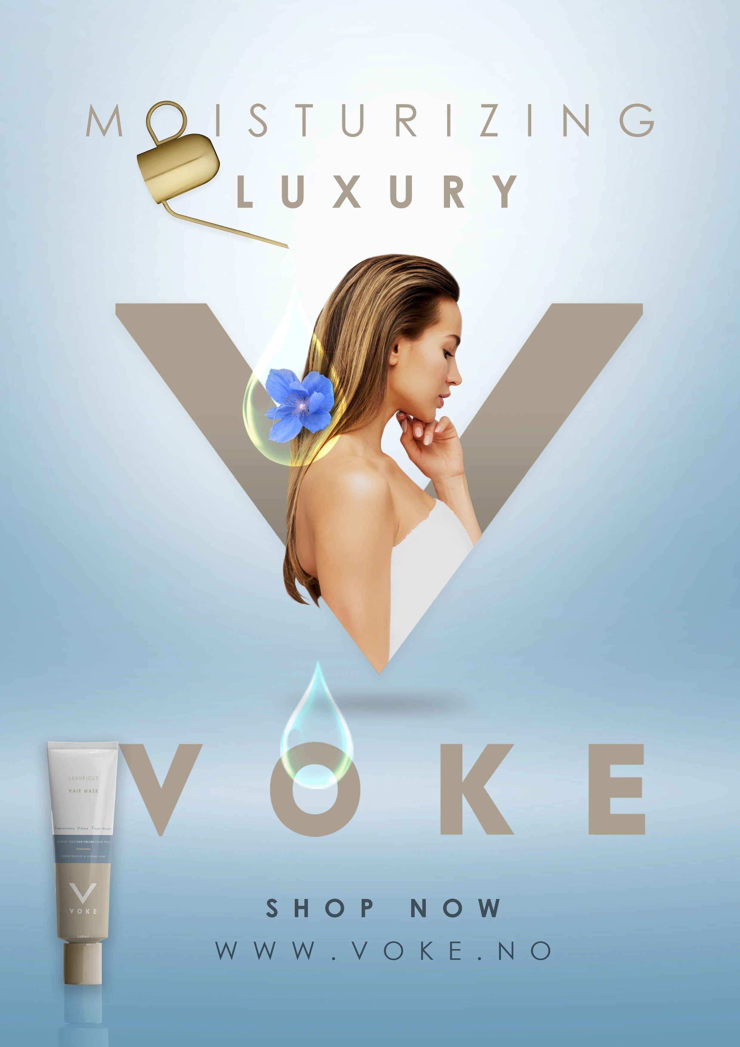I created three key visuals to represent the core benefits of the hair mask: intense moisture, high-shine technology, and a lightweight formula that doesn’t leave a greasy or heavy feeling. Each artwork is designed to capture and visually communicate these essential properties and are then adapted to both digital, outdoor and printed forms of advertisement.