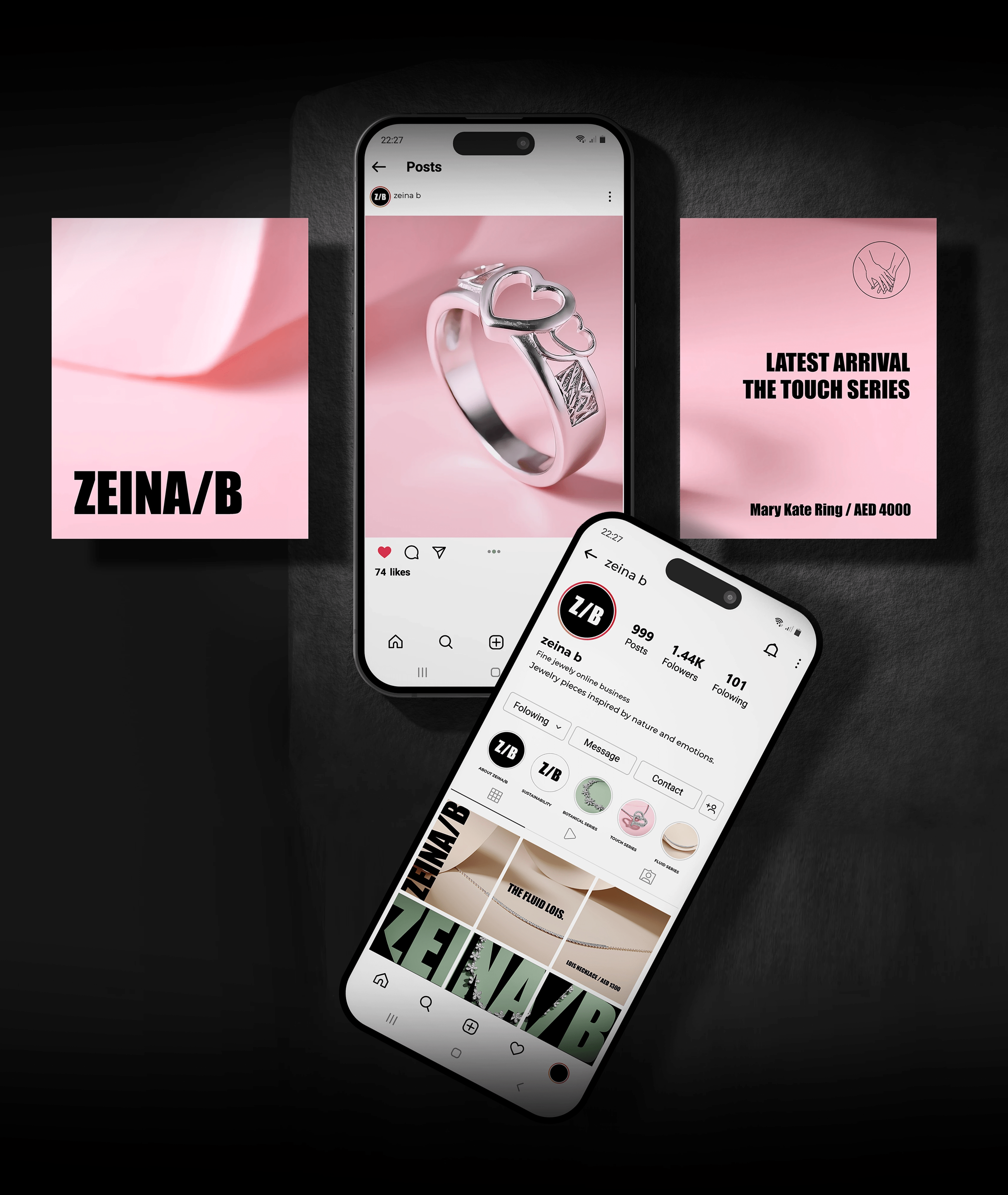 The ideation and concept behind Zeina / B was to showcase the brand’s elegance and boldness of the modern women. Using a bold edgy expression in their new brand identity, yet complimented with the fragile elegance and its pastel color palette in accordance to different moods, to represent the sweet resilience of the everyday woman, celebrating feminine strength.